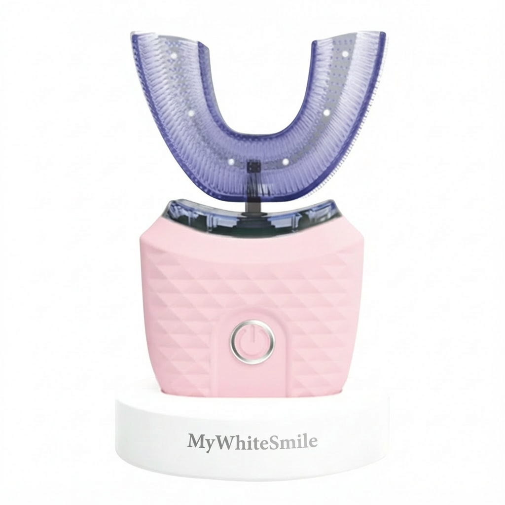 Das revolutionäre U-förmige Design reinigt alle Zähne gleichzeitig, während die Blaulichttechnologie für Aufhellung sorgt. Einfach zubeißen, drücken und in Sekundenschnelle ein strahlenderes Lächeln genießen.